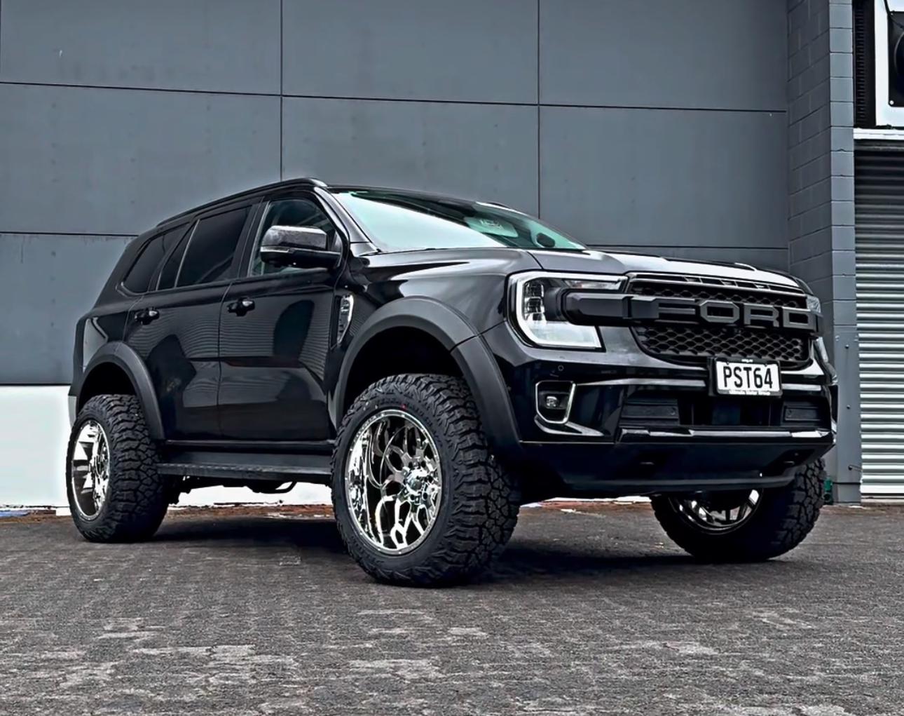 These smooth‑style fender flares add approximately 33 mm of width to each side of the Ford Everest’s guards, delivering a wider stance for improved presence. Designed for the NEXTGEN Everest, they accommodate wheels up to 9.5 inch wide with a 15 mm offset. Installation requires professional expertise; we recommend using urethane or silicone adhesive for lasting durability in New Zealand conditions. The flares are supplied without front lower bumper sensor holes, ensuring a clean finish for models without sensors. Crafted from high‑quality material, they resist corrosion and UV exposure. Each unit includes all mounting hardware for a straightforward fit. Enhance your vehicle’s rugged look while maintaining functional clearance.