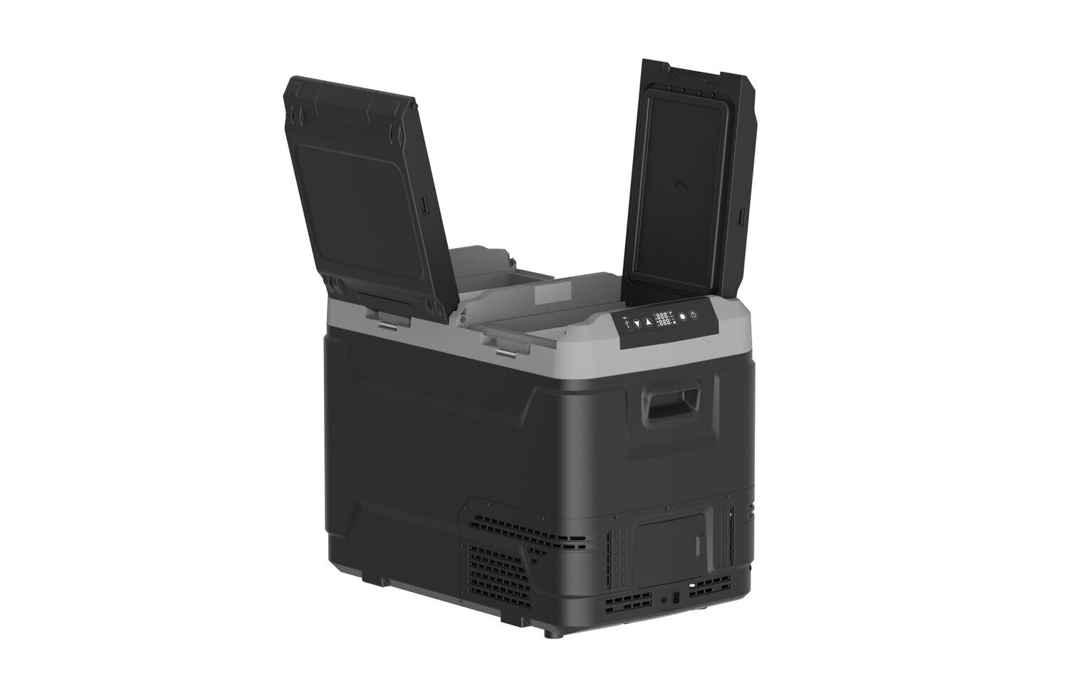A must have for any camping trip is this dual zone 50L car fridge/ freezer. With charging options of wall, car and solar, no need to worry about where to source the battery charge from. Battery included has an approx 4-5 hour workload. With reversable lid, drain plug in the fridge compartment, chopping board and big wheels suited to softer grounds, this all rounder sits nicely in the back of a car or can be wheeled on to the beacj, sport grounds or where ever you need to cooled goodies to go.