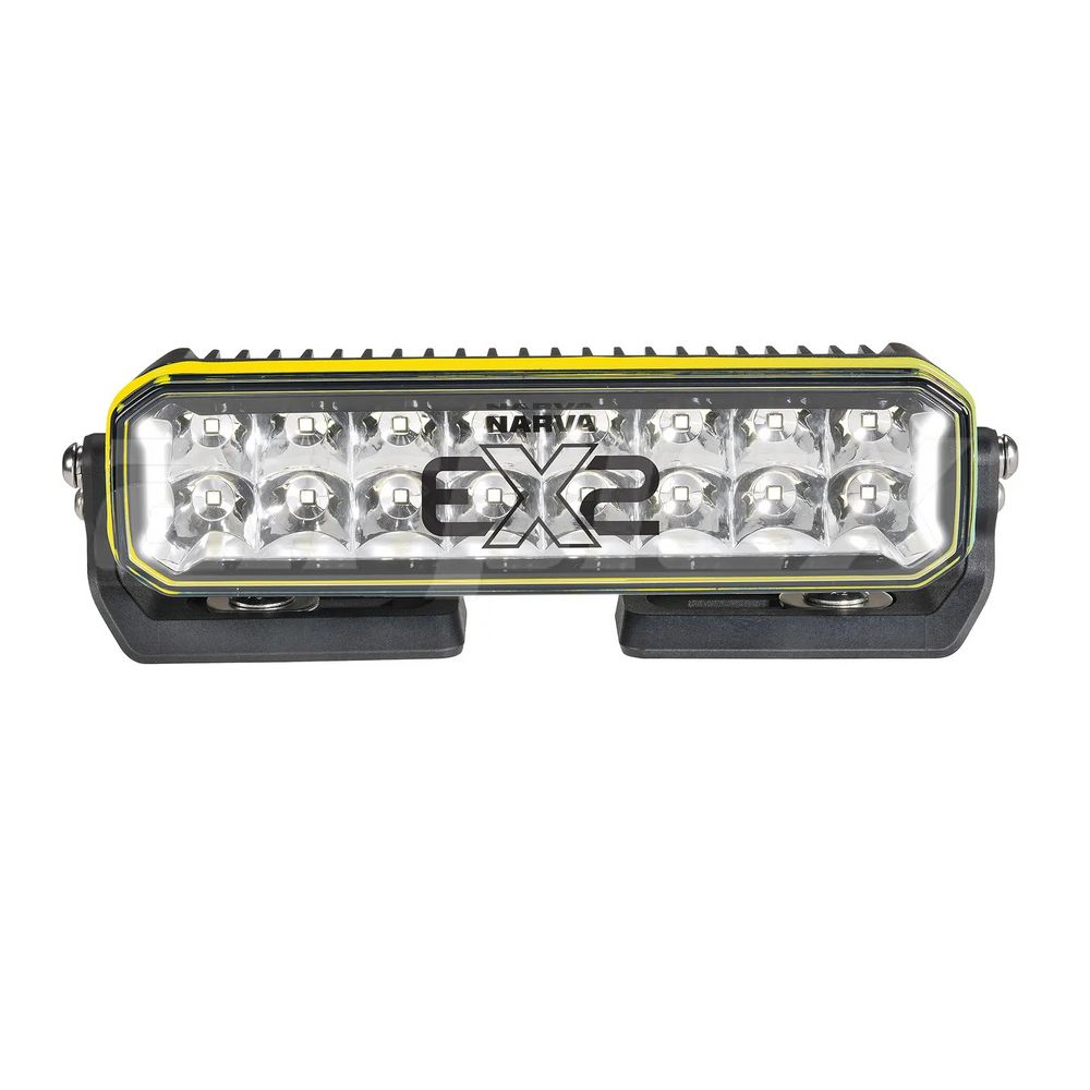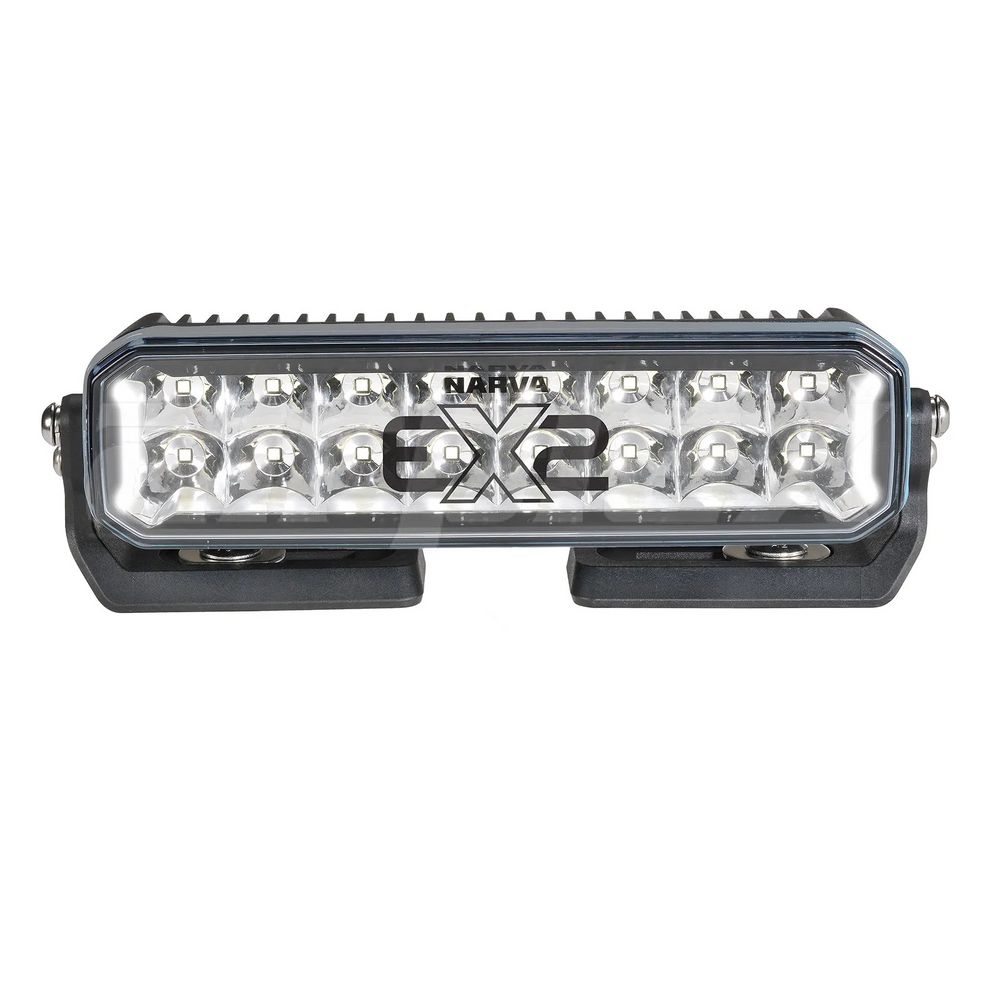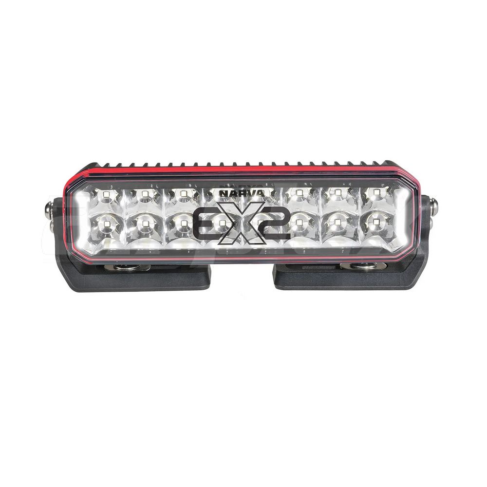 The Narva EX2R 10-inch double row light bar delivers exceptional illumination and distinctive aesthetics for serious off-road and transport applications. Featuring ADR/ECE approved front position lights, it ensures enhanced visibility and a modern appearance. Its RGB-enabled functionality allows for customisable colours with an optional 12V RGB Bluetooth® Controller, intended for off-road use. Engineered for effortless integration, the EX2R boasts a clever harness-free installation and robust nylon composite mounting brackets, eliminating corrosion risks. The advanced hybrid beam pattern provides outstanding light width and distance, achieving 1 lux at 700 metres without dark or hot spots. This unit offers a broad 9-33V input voltage range and is equipped with 16 high-performance LEDs, delivering 5,680 raw lumens. A 7-year warranty underscores its reliability and superior build quality.