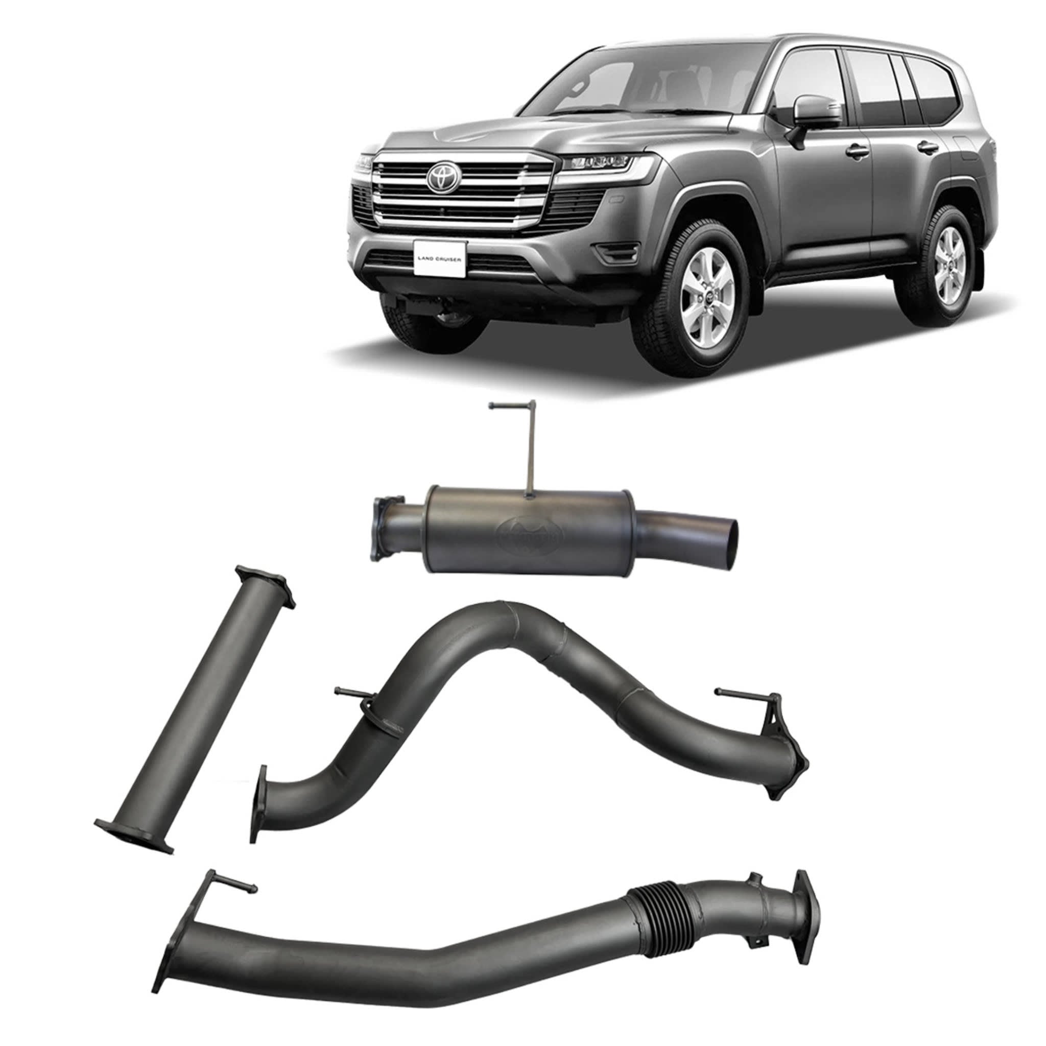 A 3‑inch DPF adapter kit designed for factory DPF backs on Toyota Landcruiser models. The kit includes sensor bosses, an engine pipe support bracket, and extreme‑duty hanger brackets. It is Australian designed and manufactured with a 10‑year warranty for durability. Features a removable plug boss for EGT monitoring and 4‑bolt, 10 mm thick flange plates. Pressed fire‑ring gaskets and premium heat‑proof paint protect against high temperatures. Approximate installation time is two hours. This product is intended for racing, ADR‑exempt, or export‑destined vehicles and is not road‑legal in Australia after installation.